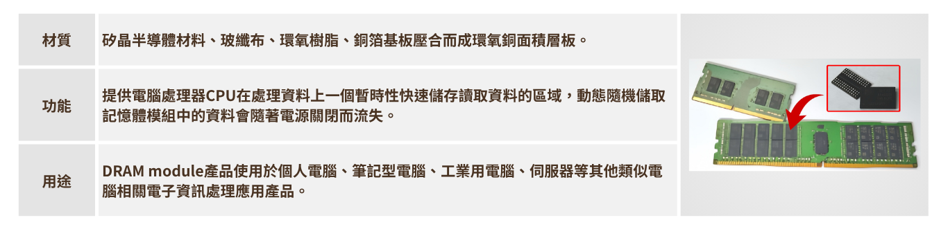 最後將生產完成的 DRAM IC 運送至模組廠,結合印刷電路板 (PCB) 與控制 IC 等關鍵元件,組裝成為最終的 DRAM 記憶體模組 (DRAM Module)。